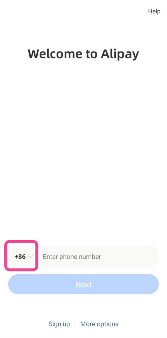 携帯番号でユーザー登録をします。+86(中国の国番号)をタップして国を切り替えます。