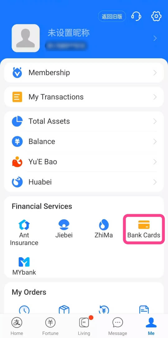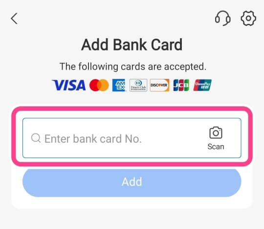 下メニューから (人アイコン)をタップし、マイページにあるBank Cardsをタップします。