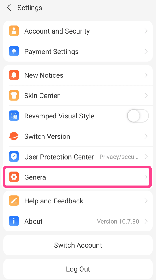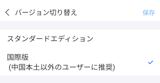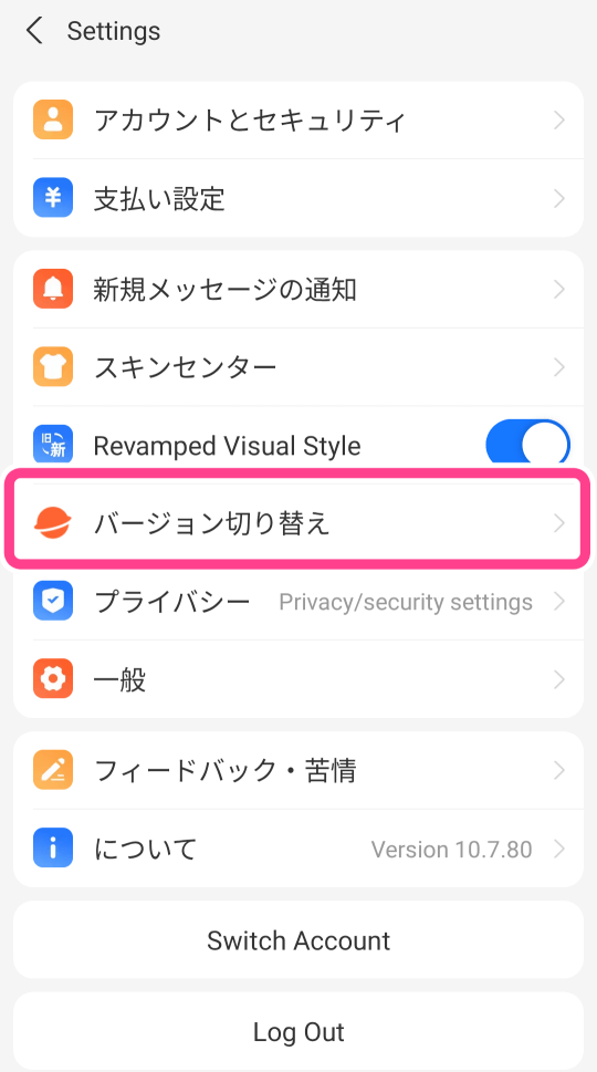 続いて国際メニューへの切り替え方です。設定からバージョン切り替えを選択します。