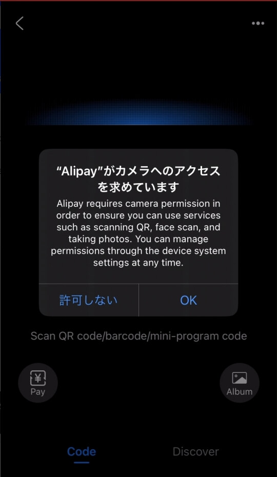 Alipayアプリは基本部分は日本語対応しています。スマホの機種やバージョンによっては最初から日本語表示されます。