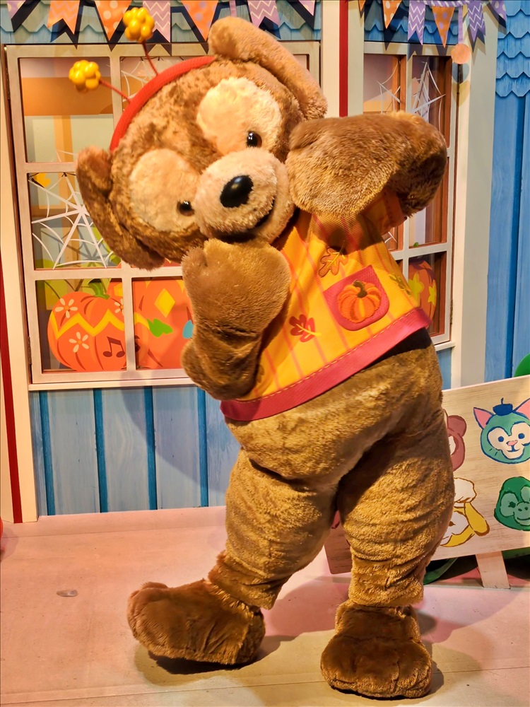 ハロウィーンコスチュームを着たダッフィー&フレンズにはダッフィー&フレンズ プレイハウスで会えます。