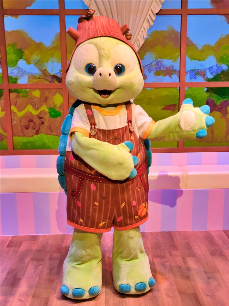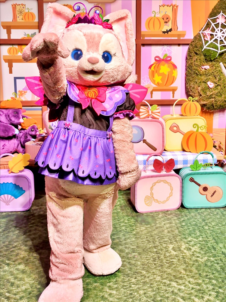 ハロウィーンコスチュームを着たミッキー、ミニーなどのフレンズやリーナベルなどダッフィー&フレンズ、またプーさんたちとグリーティングできます。