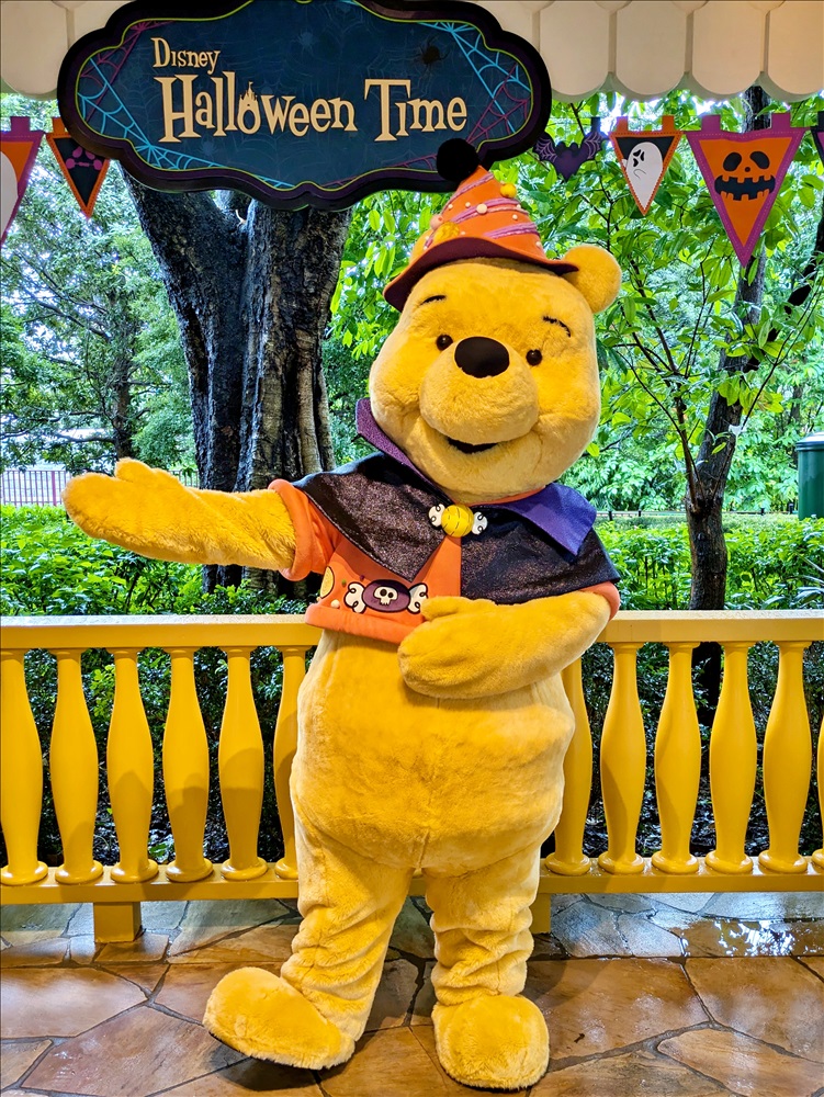 ファンタジーガーデンではプーさんたちがハロウィーンコスチュームで登場します。