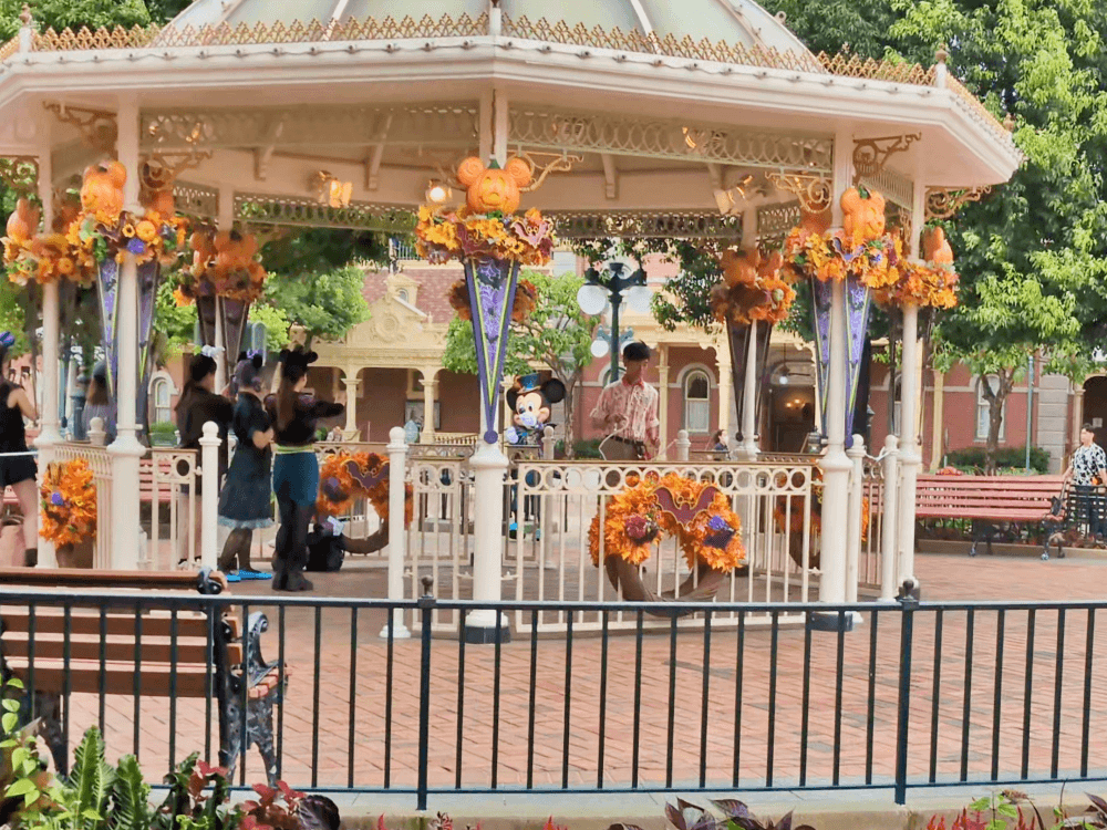 一般入場としては早めに入れましたが、それでも、ガゼボのミッキーのグリーティングはアーリーしたゲストさん達で長い列ができていました。
