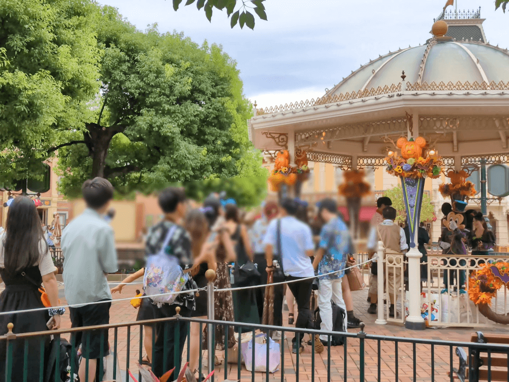 ハロウィーン期間もダッフィー&フレンズプレイハウスは正式なオープン時間をすぎてからオープンのようです。入場待ちの列ができていました。