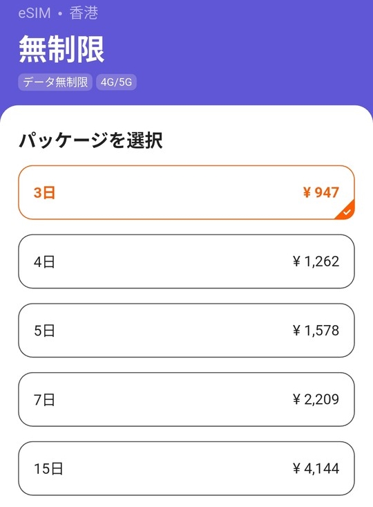 これらのeSIMは1日あたりの通信量や日数を自由に選べます。短い滞在にも長い滞在にも利用できます。