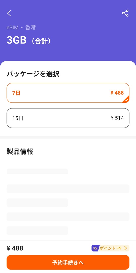 KKdayで上でご紹介したおすすめのeSIMを購入した場合を例に説明します。
