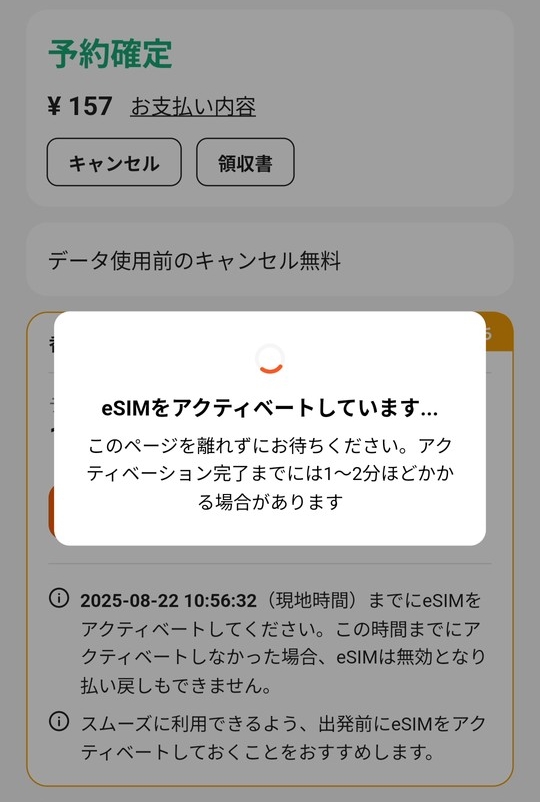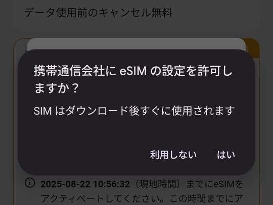 基本的には日本出発前に実施して問題ない手続きです。ただし、手違いでeSIMが利用開始状態にならないように現地で手続きせよとの指示が書いてあるケースがあります。