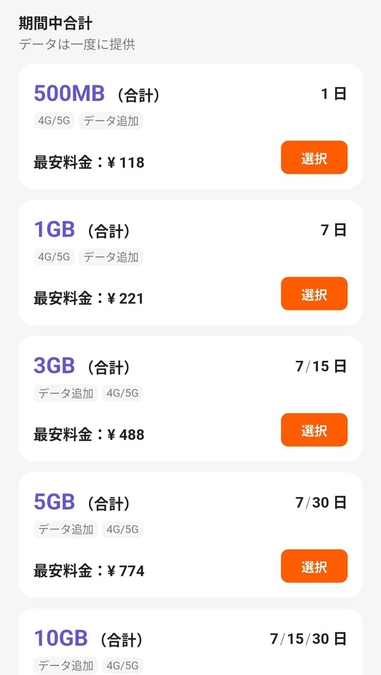 これらのeSIMは1日あたりの通信量や日数を自由に選べます。短い滞在にも長い滞在にも利用できます。