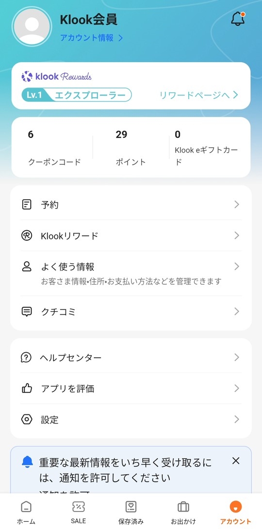 KlookアプリのダウンロードKlookアプリを起動したらログインしておいてください。