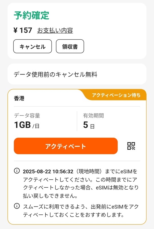 補足:香港に到着後にアクティベーションする場合