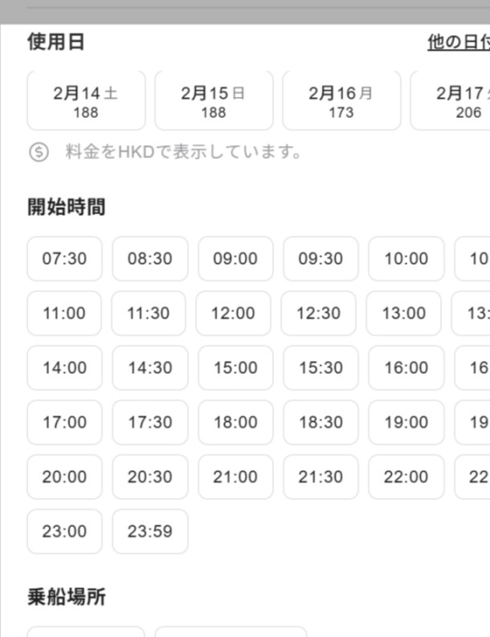 エコノミークラス 昼 HK$ 270 夜間 HK$ 300