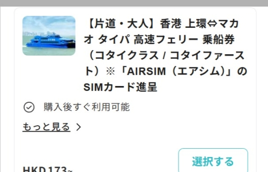 香港・マカオ間のフェリーチケットはどこで購入したら安いのか調査した結果です。