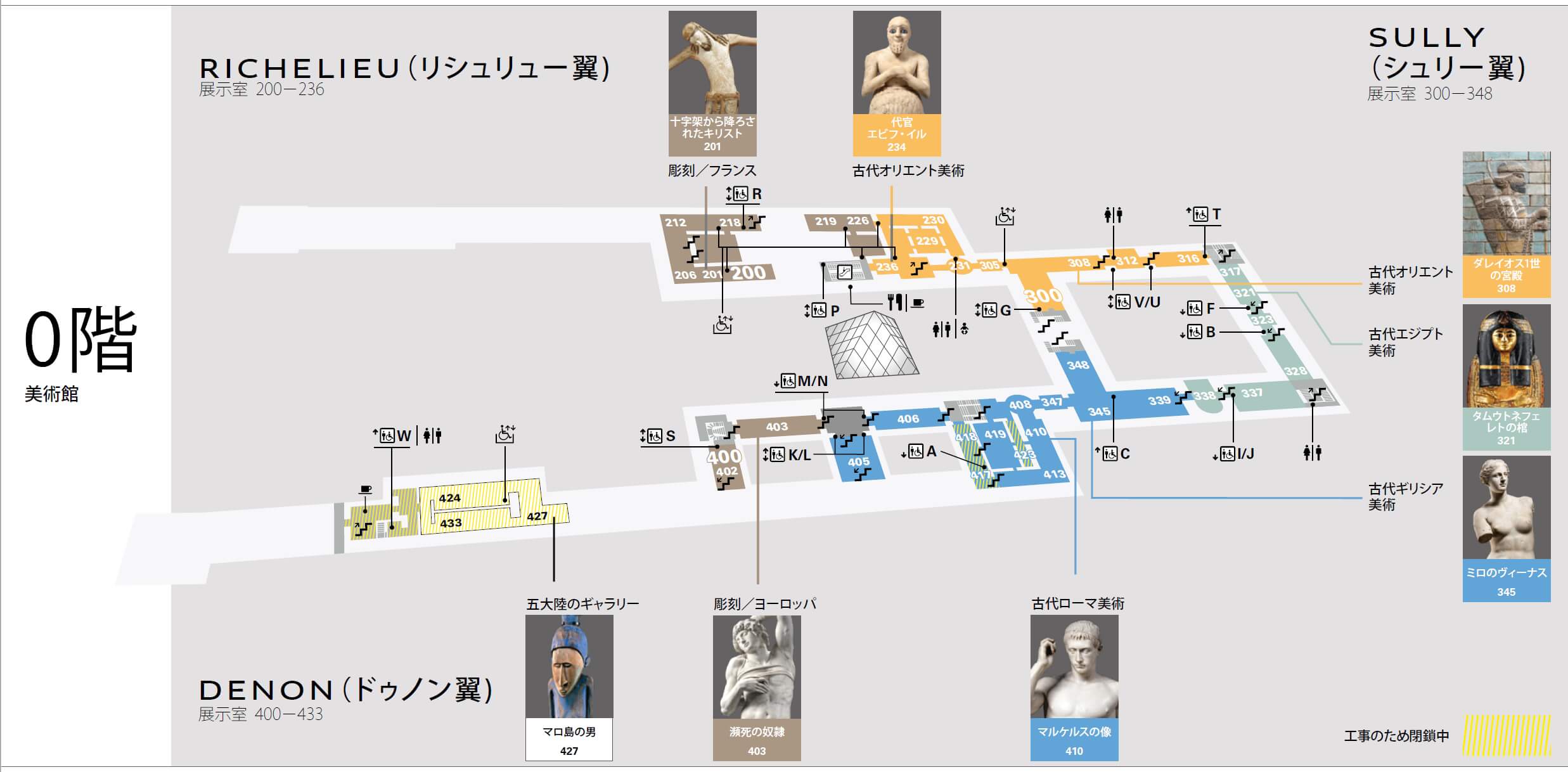 ルーブル美術館では頻繁に改装が行われます。お目当ての展示品が見られるか事前に確認しておくと安心です。