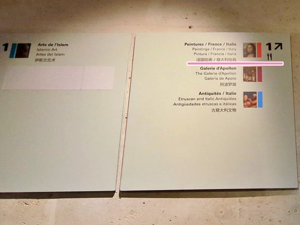 入場して最初にルーブル美術館最大の至宝「モナ・リザ(ラ・ジョコンド)」へ直行するルートをご紹介します。