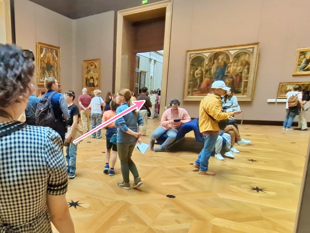 それではDENON(ドゥノン)翼の入口から入場したあと、モナリザ(展示室711)へ直行するルートを説明します。