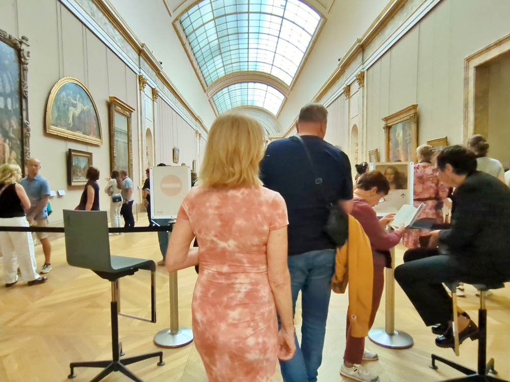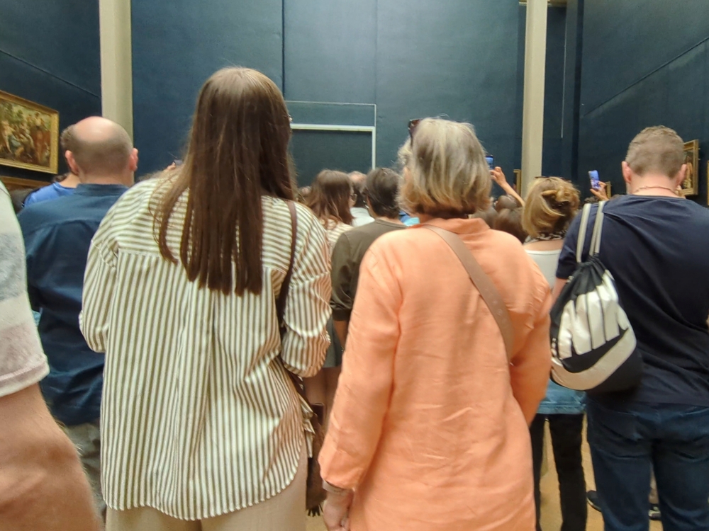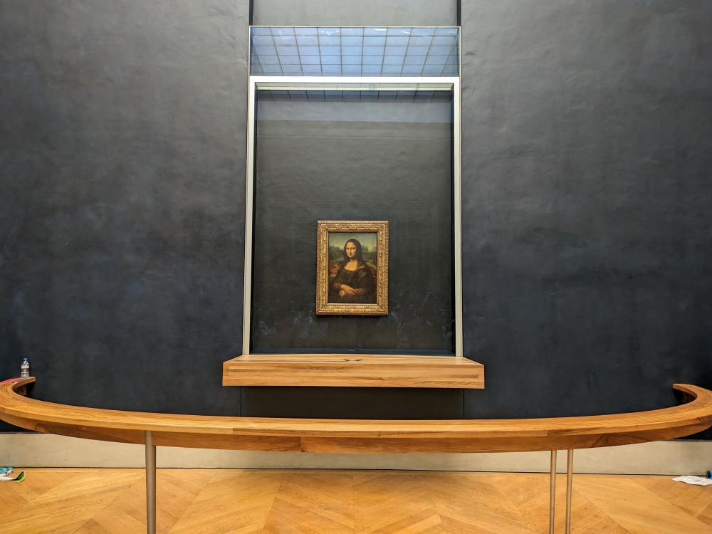 以前はロープが張られた列に並んで見学する形式でしたが、最近は明確な列はなく少しづつ前に進んでモナリザに近づいていく感じだと思います。