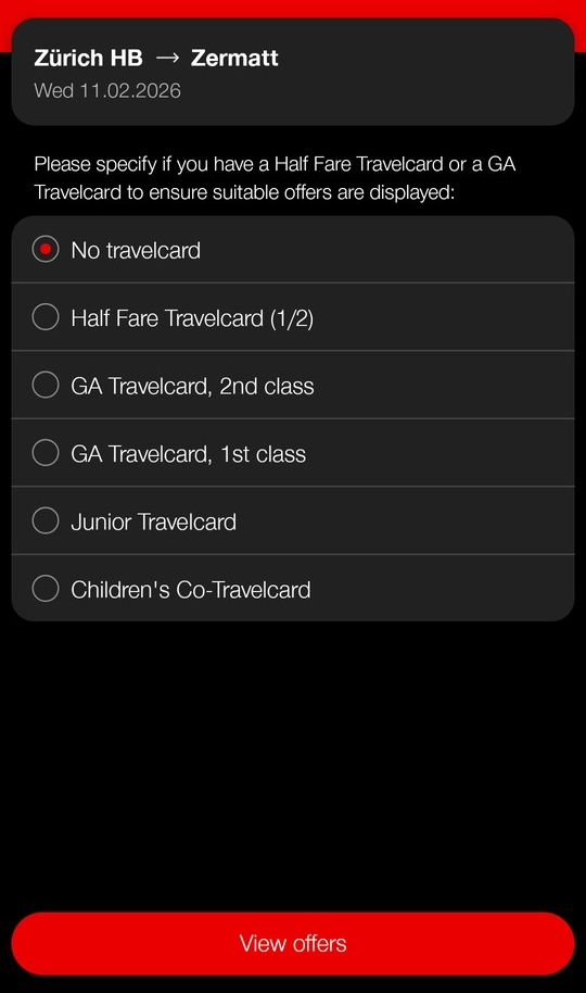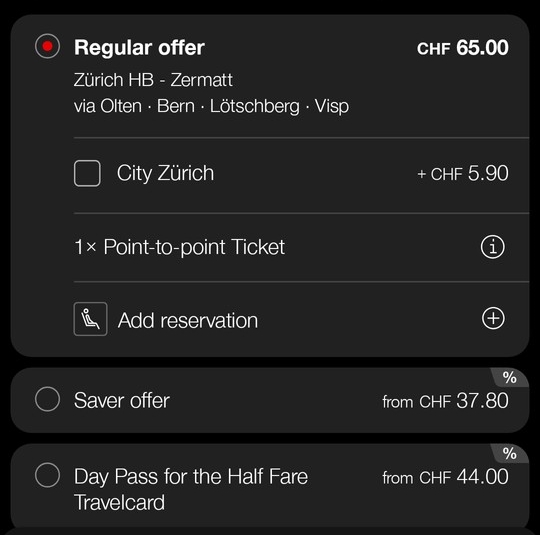 確認してみようと思ったのですが、ハーフフェアカードのオファーが出てこず、120CHFのままでした。
