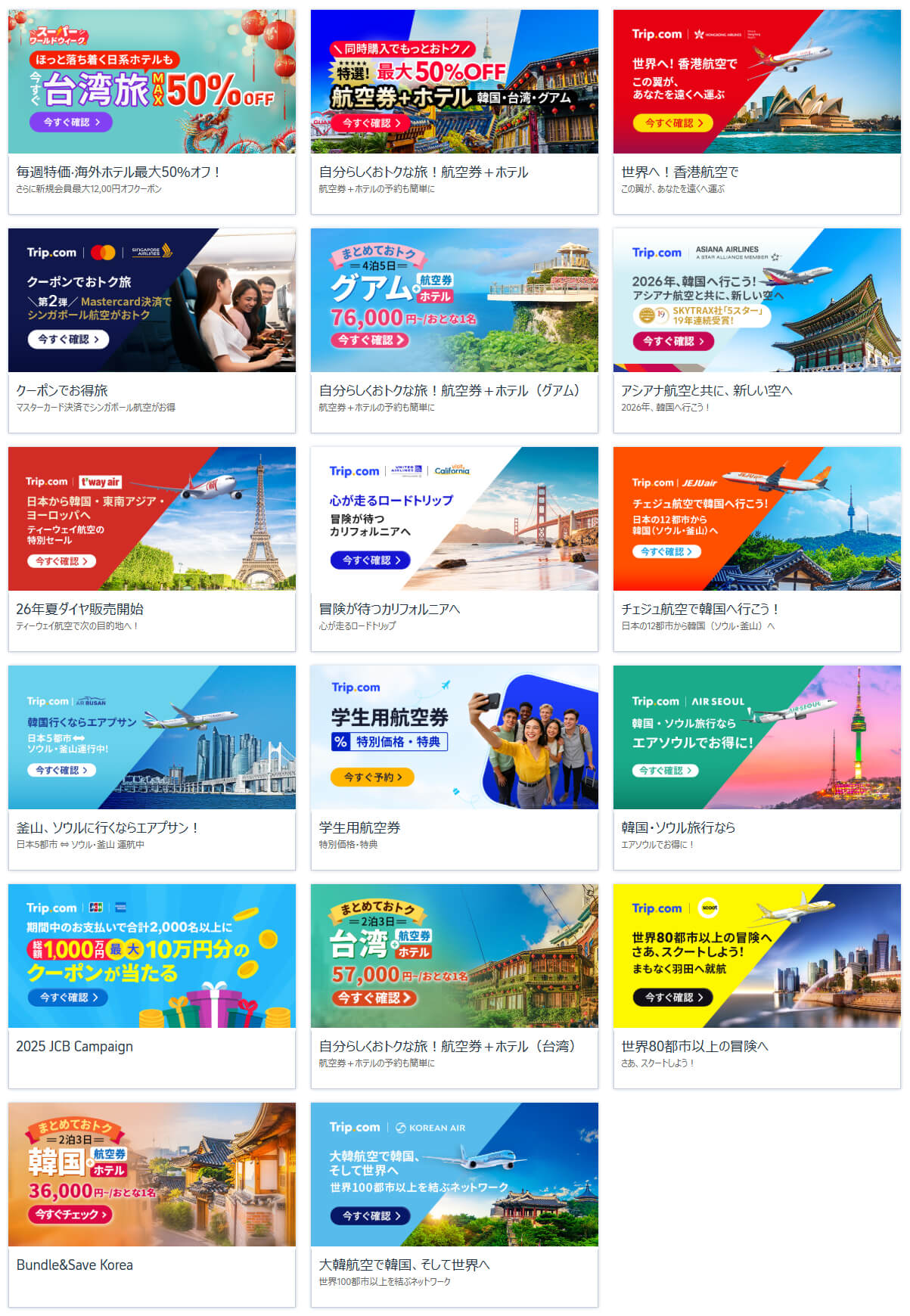 下記リンクでTrip.comのクーポン・セール情報のページを表示できます。